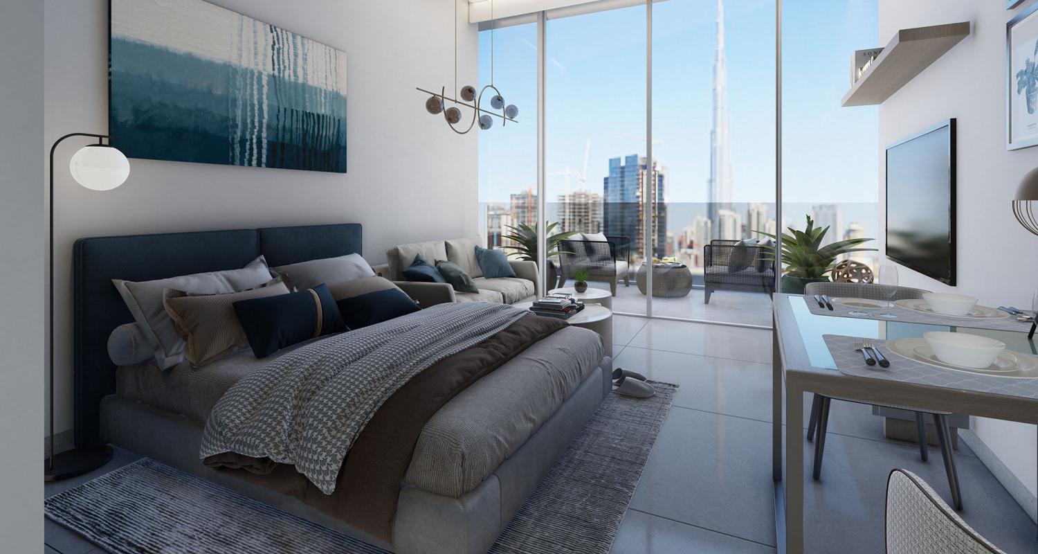 The 52-floor tower offers 404 fully and semi-furnished units. Residences on offer include studios, 1–3 bedroom apartments and 2-bedroom duplexes with living areas ranging from a compact 354 sqft to a huge 7,090 sqft. From the spacious balconies, residents will enjoy stunning views of the iconic Dubai skyline, and several 3-bedroom apartments come with an office and a maid’s room.