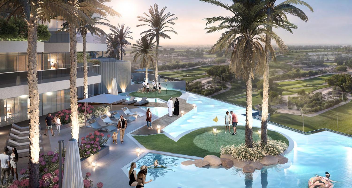 Occupants of Golf Greens will benefit from a wide range of amenities located on the territory of the development, including a magical aqua garden, infinity pools with decks, island greens surrounded by crystal pools, and an indoor golf simulator where you can master your skills and enjoy night time golfing, and even more to come. A chill out lounge and a juice bar will become your favourite places to relax after a long day. Living in DAMAC Hills will also let you enjoy access to the Malibu Bay wave pool, a BBQ area, a cricket field, a volleyball court, a football court, a tennis court, a jogging track, a skate park and other sports amenities. Green parks, food trucks, a petting zoo and a fishing lake will also be available. Trump International Golf Club will be located within walking distance from the development.