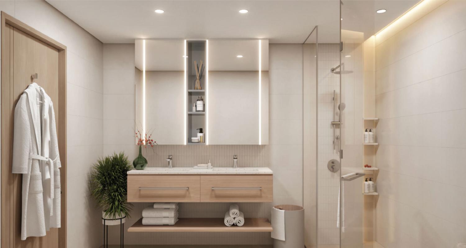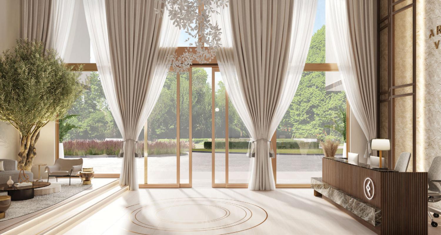 Sports enthusiasts will appreciate an indoor yoga studio, a gymnasium with modern equipment, yoga and meditation pods, as well as a circulation and reflectivity paths among the green spaces. A bathroom for people of determination will also be available close to indoor sports facilities. Steam and sauna rooms will also be present on the territory of the complex.
